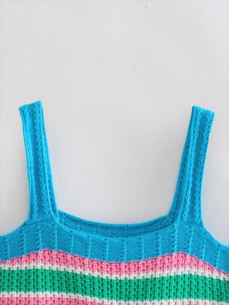 Motif : RayuresStyle : Quotidien, coloré et fluoÉléments populaires : dos nuClassification des couleurs : Bleu, Vert et RoseLongueur : courtStyle : bretellesComposition du matériau : Coton 70 % Polyacrylonitrile (Acrylique) 30 %