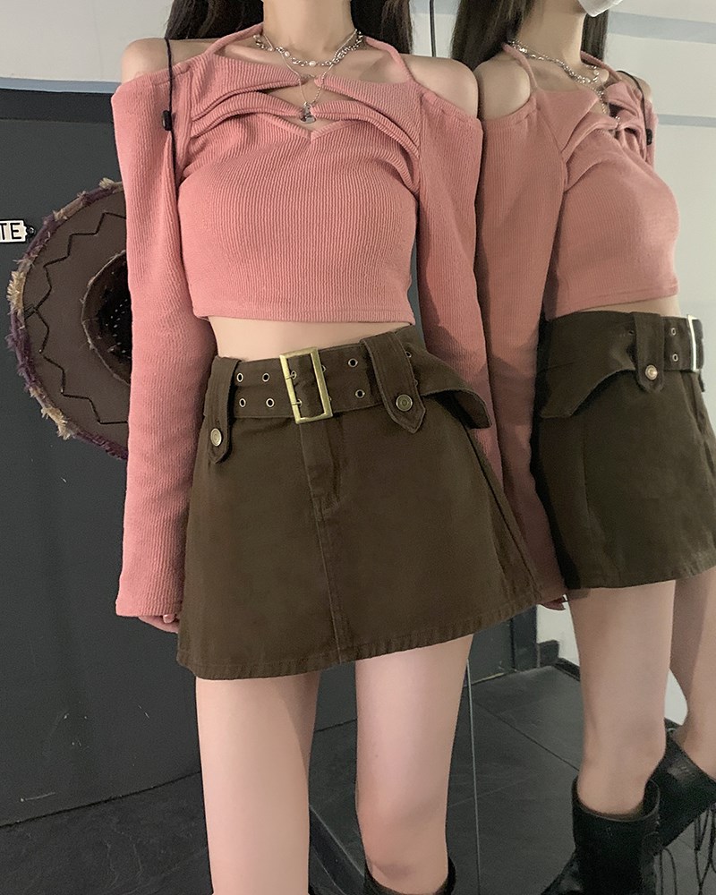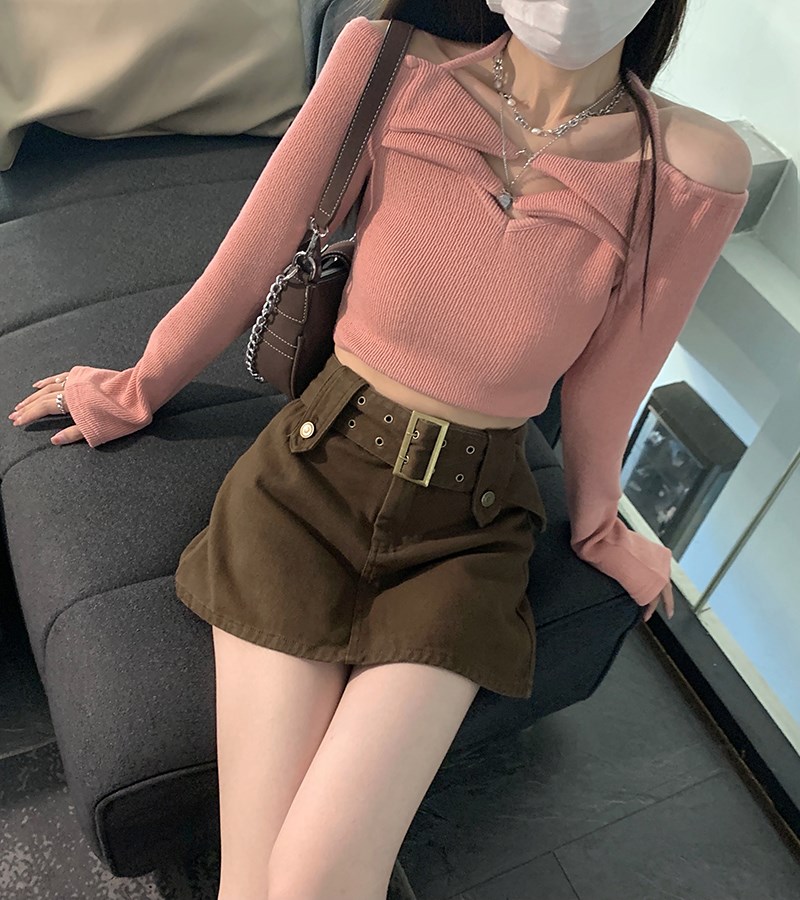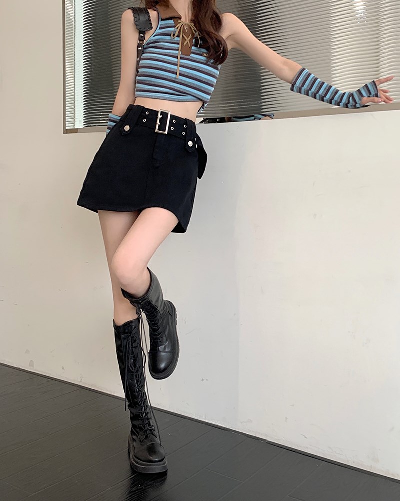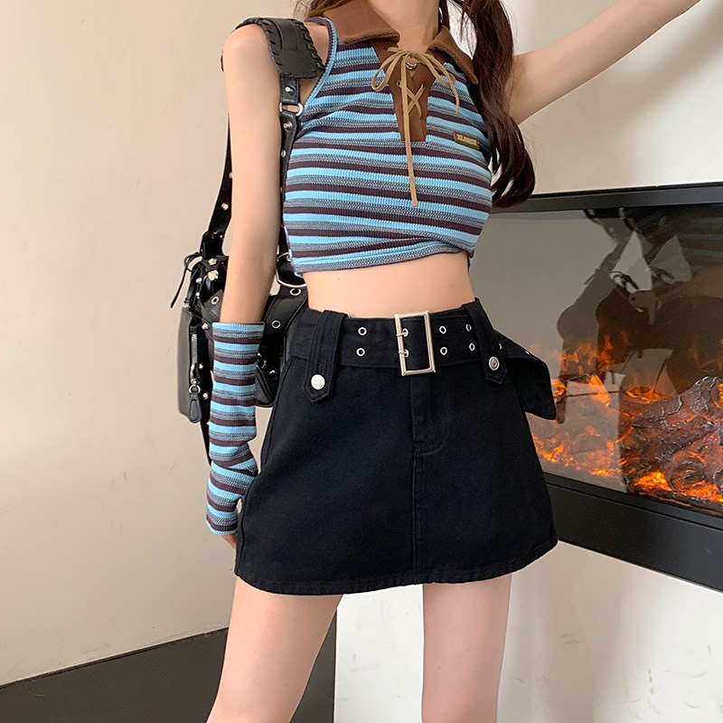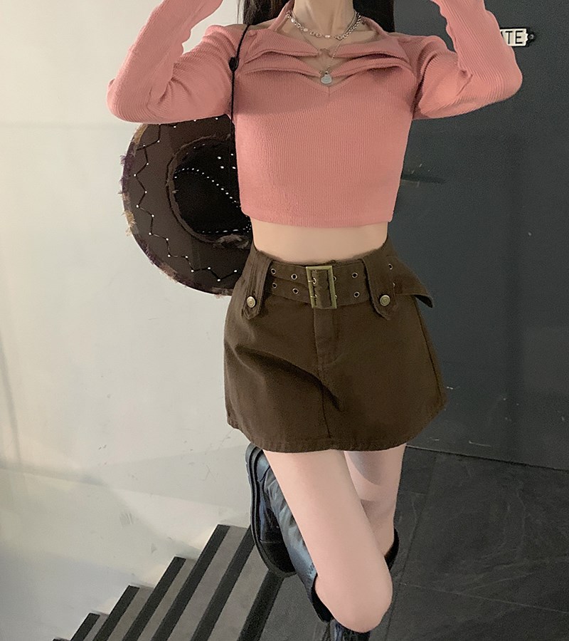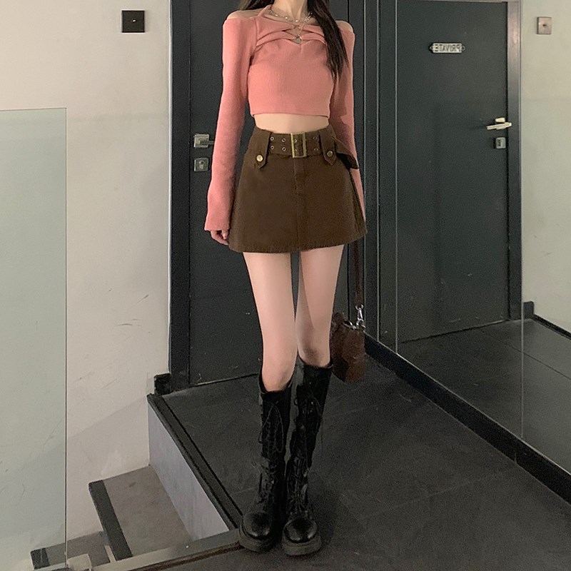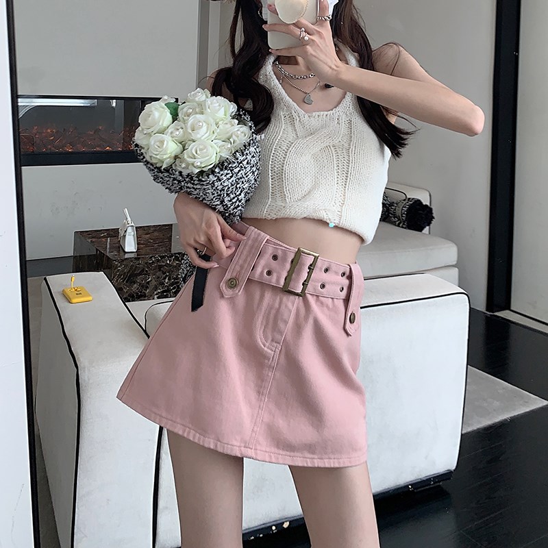 Tissu: Denim JeanMotif: couleur unieForme de la taille: taille hauteType de jupe: Jupe trapèzetrapèze Classification des couleurs: café, rose ou noir